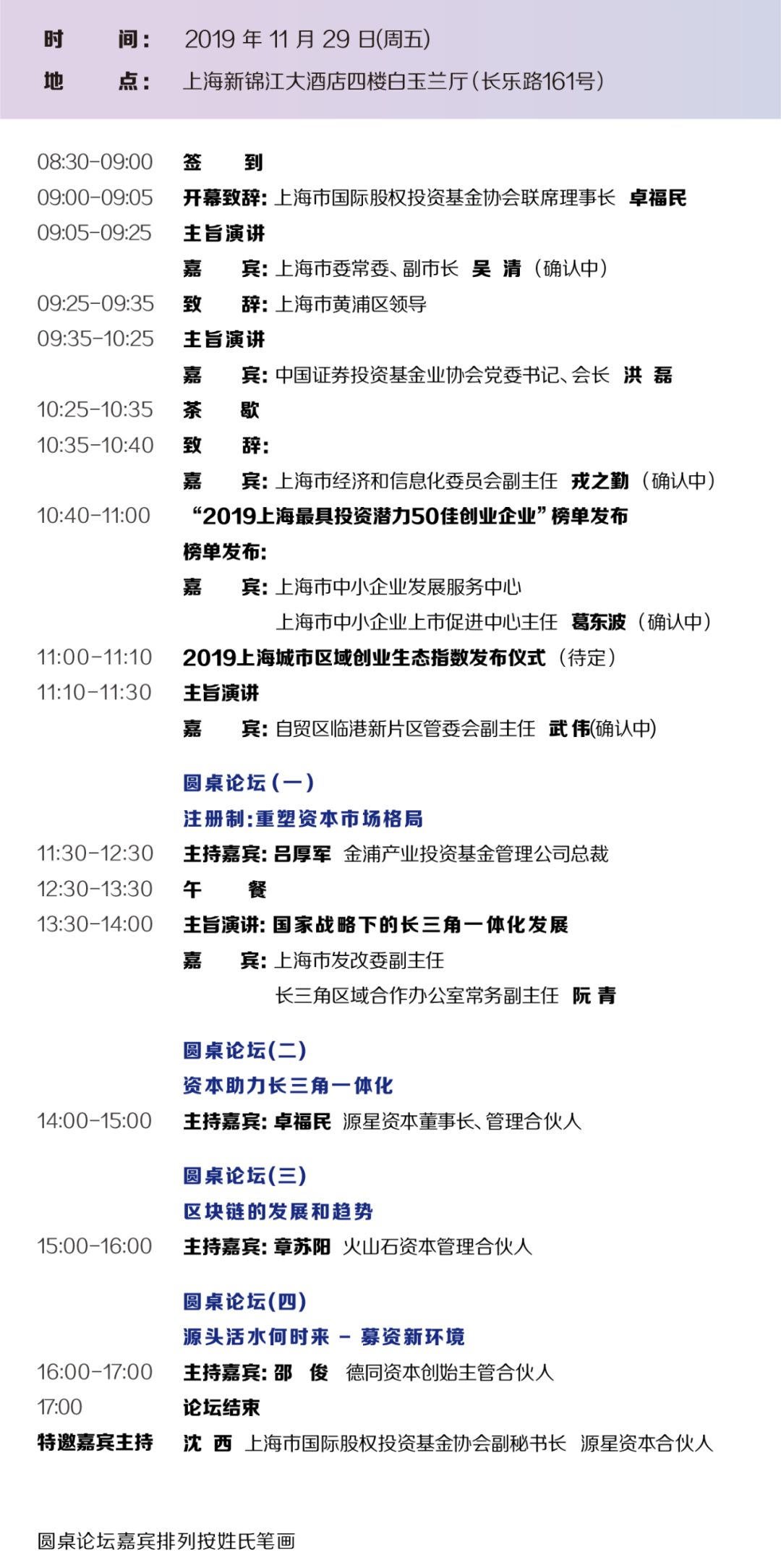 在此大背景下,由上海市国际股权投资基金协会、上海市黄浦区金融服务办公室、中欧陆家嘴国际金融研究院共同举办,上海市中小企业发展服务中心、上海市中小企业上市促进中心以及阿里巴巴创新中心、上海股权投资协会、上海市创业投资行业协会联合主办的第十三届“外滩金融?上海国际股权投资论坛”(2019 SIPEF) 将于2019年11月29日在上海举行。本届论坛拟将围绕“科创赋能 资本助力”的主题对创投行业现状及未来“升级版”格局进行深入探讨,诚邀您的参与!